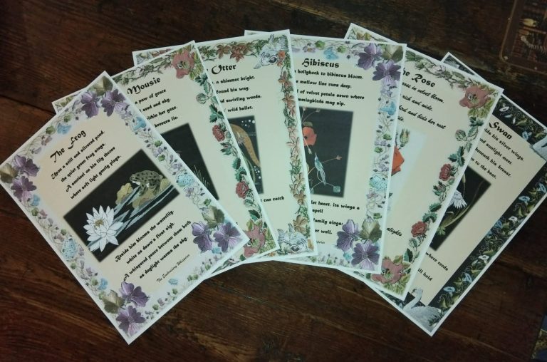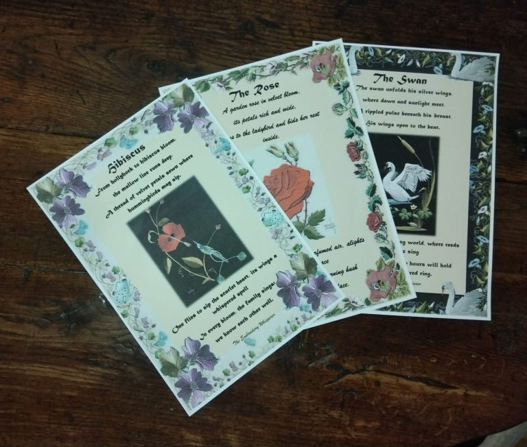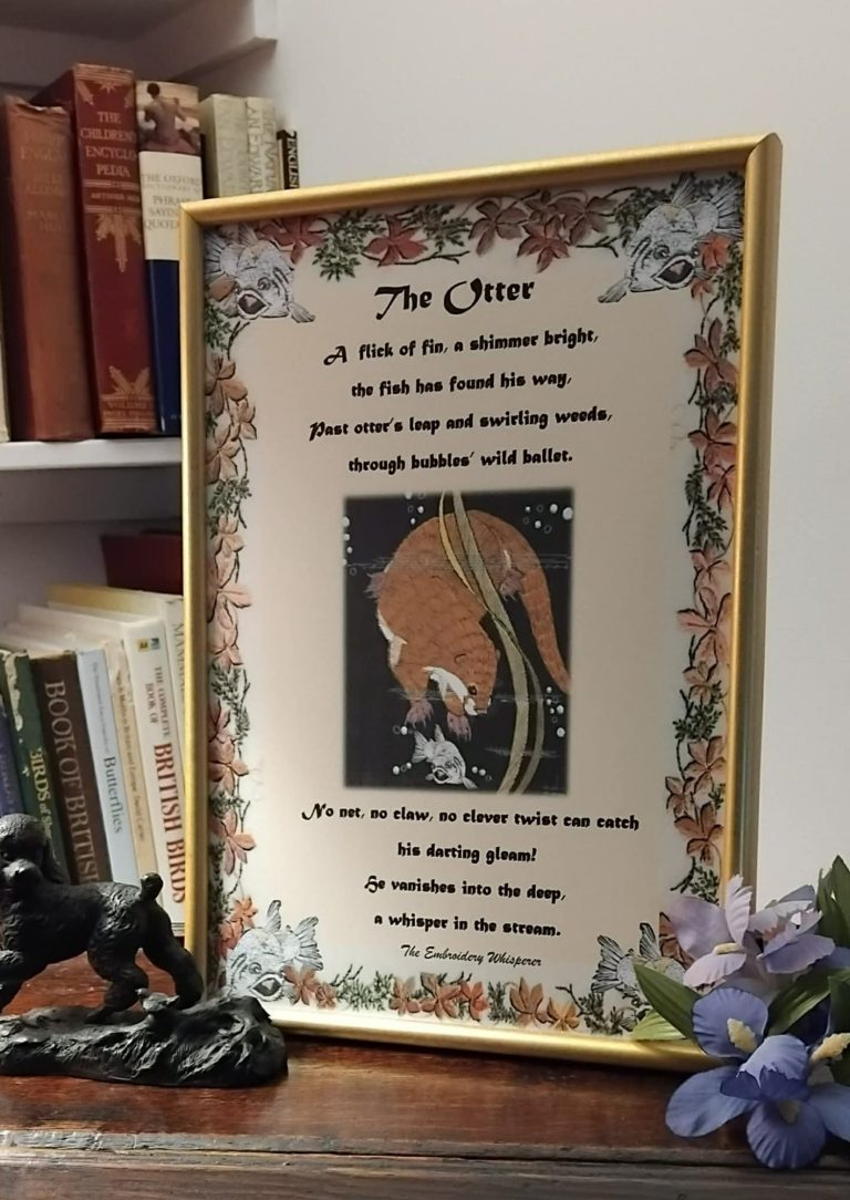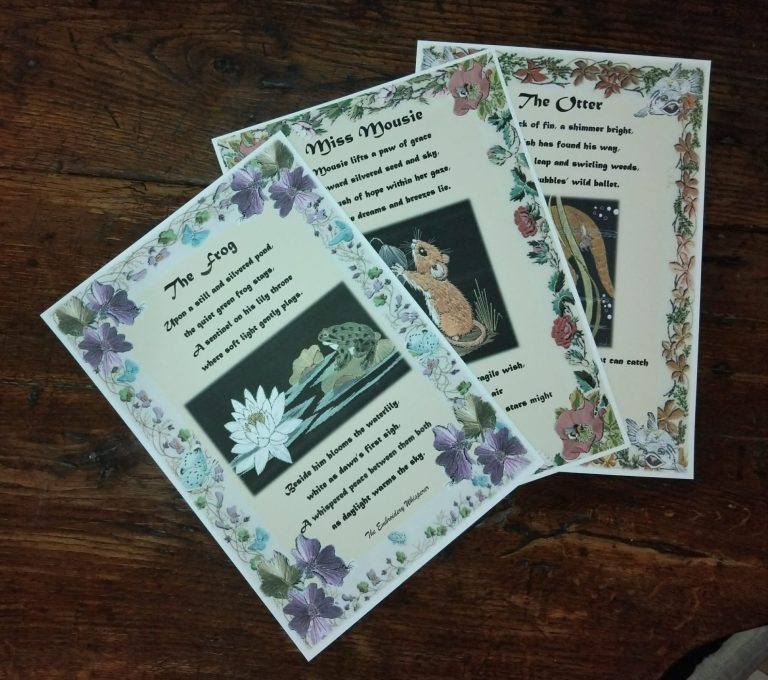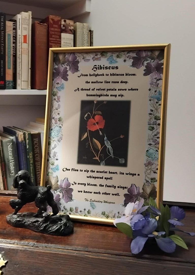 The Embroidery Whisperer's illustrations are complimented by a few words from Kentitrix which relate to the various stories or cycles of the Mythstitcher's world.